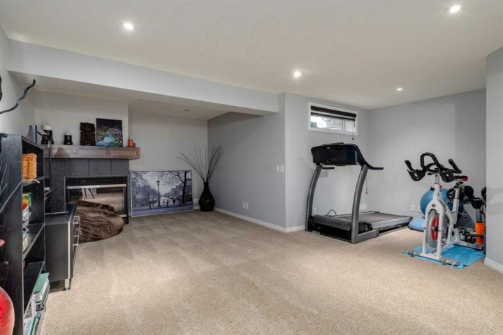 The lower level offers a cozy gas fireplace in the large rec room, a 4th bedroom, 3-piece bath, built-in workbench, and ample storage. Major updates ensure peace of mind, including NEW FURNACE AND HOT WATER TANK (2022). Exterior upgrades set this home apart with GEMSTONE LIGHTING, professionally landscaped yard with CONCRETE CURBING, UPGRADED LIQUID-STUCCO COATING (30 yr warranty), well-maintained roof, NEW COMPOSITE DECK WITH GLASS RAILING (2025), ALL WINDOWS REPLACED (2010 – Bonus room with Triple-pain).