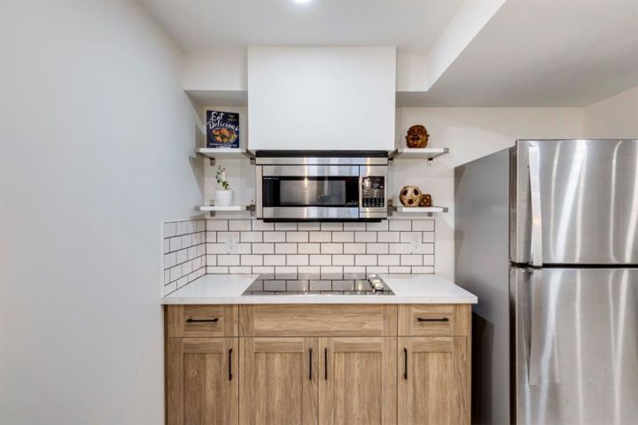 - Basement: Fridge, Countertop Stove, Microwave Hoodfan, Bar Fridge