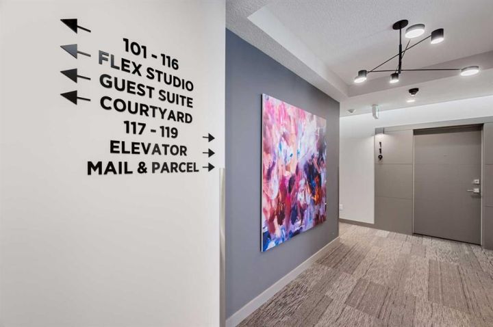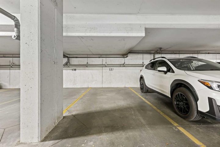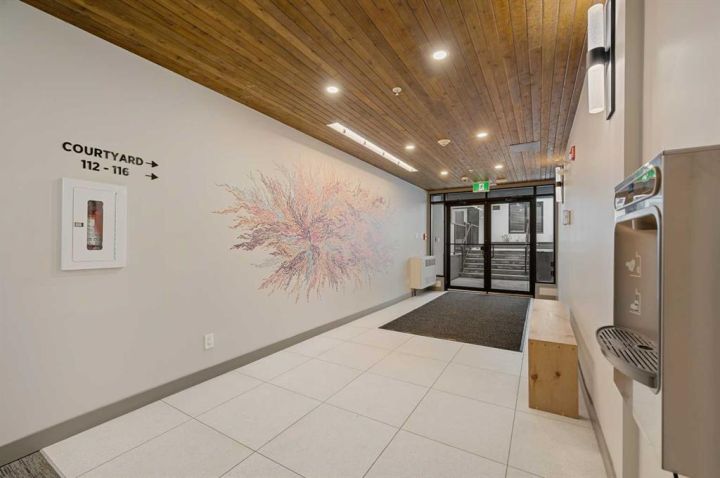 Welcome to COCO — a contemporary gem that captures the essence of upscale urban living in the heart of vibrant Marda Loop. Designed with modern sophistication in mind, this air-conditioned one-bedroom residence offers a seamless blend of style, comfort, and functionality. Tall 9-foot ceilings and sleek laminate floors create an airy, open feel throughout, while the thoughtfully designed layout maximizes every inch of space. The kitchen stands out as a true showpiece, featuring premium stainless steel appliances including a gas convection range and concealed slide-out hood fan. Full-height cabinetry provides ample storage, while polished quartz countertops and an extended dining peninsula create the perfect balance of beauty and practicality for cooking, dining, or entertaining. The open-concept living area is bright and welcoming, bathed in natural light from large windows and flowing effortlessly onto a spacious private patio complete with a gas line—ideal for summer evenings and outdoor gatherings. The bedroom offers a peaceful escape, with a walk-through closet leading to a stylish 4-piece bath finished with quartz counters, ceramic tile, and a fully tiled tub/shower surround. Added conveniences include in-suite laundry with a full-size washer and dryer, plus a titled, heated underground parking stall for year-round comfort. COCO is a pet-friendly community that emphasizes modern convenience and lifestyle. Low condo fees cover heat, water, and access to exceptional amenities such as secure bike storage, guest parking, a rentable guest suite, a multi-use lounge, an indoor dog wash, a water bottle refill station, and a beautifully landscaped courtyard. Perfectly situated steps from shops, restaurants, cafés, fitness studios, parks, and public transit, COCO places you at the center of everything Marda Loop has to offer. With its refined finishes, practical design, and unbeatable location, this stunning home delivers the ultimate in contemporary city living. Book your private viewing today and experience the COCO difference.