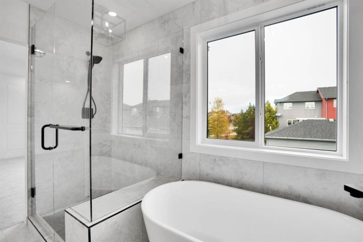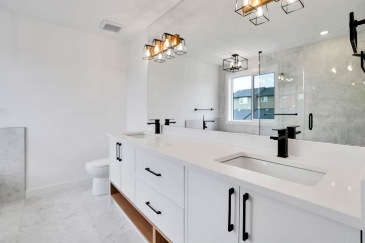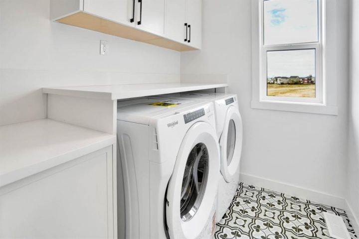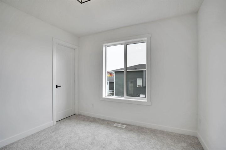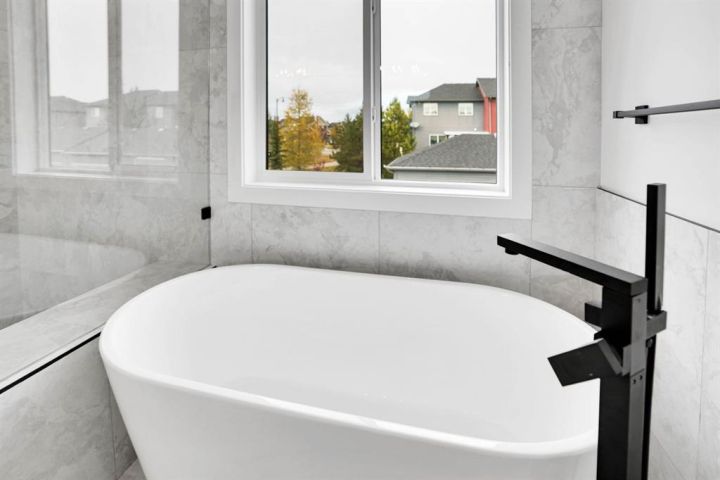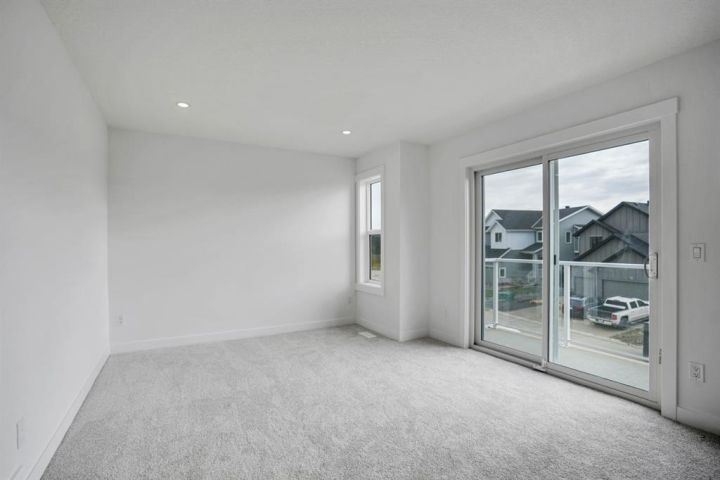 Welcome to this stunning 2200+ sq. foot home in the heart of Pinnacle in Sunset Ridge, Cochrane, where modern design meets natural beauty. Just 45 mins from the majestic Rocky Mountains and 30 mins from downtown Calgary, this home is surrounded by serene ravine and mountain views, offering the perfect balance between peaceful retreat and urban convenience. Built with every detail in mind, the home features a timeless neutral colour palette and large windows that fill each room with natural light. The open-concept great room centers around a cozy fireplace, seamlessly connecting to a spacious dining area and chef inspired kitchen. The kitchen boasts elegant white oak cabinetry with under-cabinet lighting, a large central quartz island ideal for entertaining, and high-end stainless steel KitchenAid appliances, including a gas stove, built in wall oven, and microwave. A Blanco granite sink adds both functionality and style to this beautiful space. Upstairs a central bonus room opens onto a private balcony where you can take in the sweeping views of the ravine and mountains. The primary suite is a tranquil retreat with a soft accent wall and a decorative barn door leading to the luxurious 5-piece ensuite complete with a stand-up shower, freestanding soaker tub, dual vanity, and large walk in closet with custom built in shelving. The upper floor also features a convenient laundry room with washer and dryer, built in sink, and additional cabinetry, as well as 2 spacious secondary bedrooms designed fo comfort and flexibility. Thoughtful details are found throughout the home, including a wide front entrance with built in bench, a mudroom with organized shoe racks and coat hooks, and balconies at both front and back of the house that offer 360-degree views. Additional conveniences include gas line to the garage, a separate side entrance, and a large back deck with a BBQ gas hookup, perfect for outdoor gatherings. This exceptional property is ideally located near scenic walking trails, schools, restaurants, and shopping, making it the perfect place to call home. Combining modern craftsmanship, elegant finishes, and breathtaking surroundings, this Cochrane residence offers the best of luxury living with a touch of mountain tranquility. Call for your private showing today.