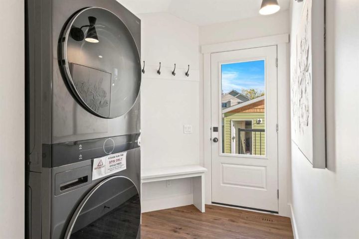 - Dishwasher, Refrigerator, Stove(s), Washer/Dryer Stacked, Window Coverings