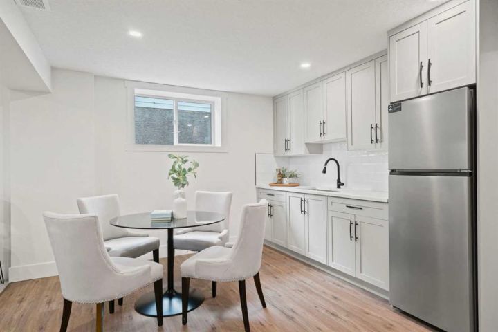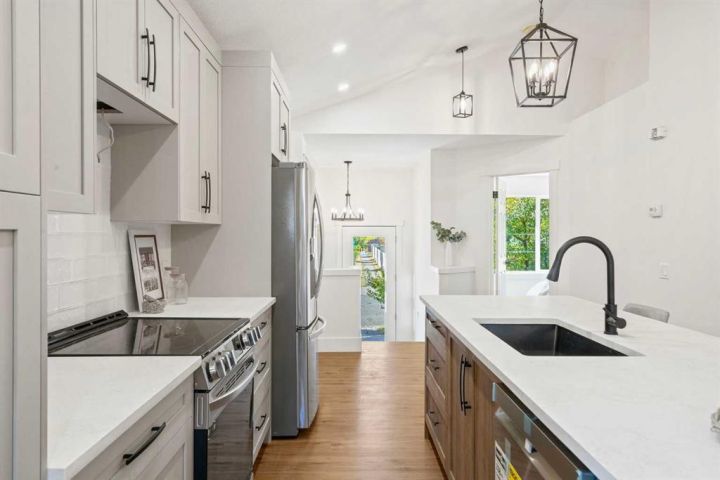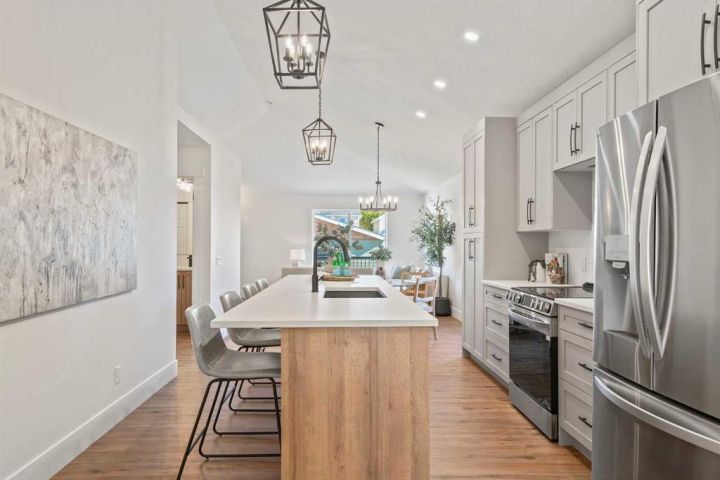 WELCOME HOME! This beautiful fully renovated bi-level home has been completely transformed from top to bottom, offering a perfect blend of modern design, comfort, and functionality. With 4 spacious bedrooms and 3 beautifully finished bathrooms, this home is ideal for families and those who love quality craftsmanship. Perfectly situated on a quiet, tree-lined street just steps from a park, it delivers both peace and convenience. The main level features a bright open-concept layout with vaulted ceilings, wide-plank flooring, and an impressive designer kitchen complete with a massive quartz island, custom cabinetry, brand new premium stainless steel appliances, and sleek black finishes. Large windows fill the space with natural light, creating a warm and inviting atmosphere. Every detail has been thoughtfully upgraded, including new plumbing, new windows, and high-end finishes throughout. The lower level adds incredible versatility with a spacious recreation area, two additional bedrooms, a full bathroom, and a convenient kitchenette—perfect for guests, extended family, or potential rental use. Step outside to enjoy the composite deck overlooking a private, landscaped yard and a brand-new oversized double garage offering plenty of parking and storage. Truly move-in ready, this home is a rare turnkey opportunity in a sought-after, family-friendly community close to schools, shopping, parks, and pathways. A must-see property that combines modern luxury with everyday practicality. Book your showing today!