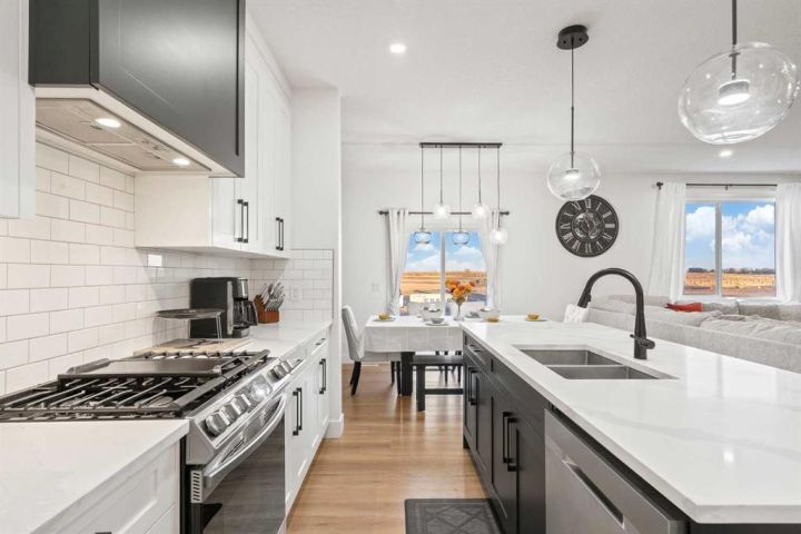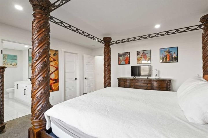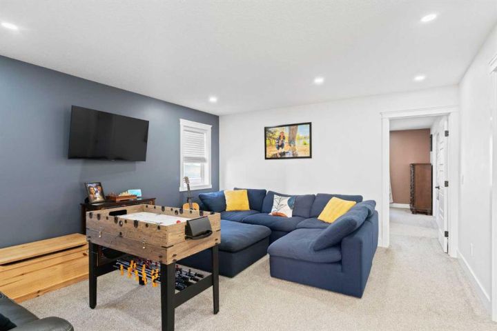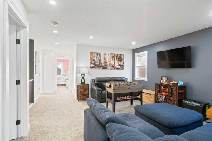 This stunning modern 2 storey home offers a perfect blend of style and functionality with an open-concept main floor designed for today’s living. The heart of the home is a bright white kitchen featuring a large island with quartz countertops, sleek cabinetry, and a spacious eating area that flows into the inviting living room with a contemporary electric fireplace. A flexible additional room on the main floor is perfect for a formal dining space or home office. Upstairs, you’ll find 4 pacious bedrooms, including a luxurious primary suite complete with a 5-piece ensuite and walk-in closet. A bonus room provides extra family space, and the convenient laundry room with sink makes daily chores a breeze. The developed lower level includes an illegal suite with a separate entrance — featuring an additional bedroom, full kitchen, 3-piece bath, laundry, and a generous rec room — ideal for extended family or guests. Perfect opportunity to run a business here as well!Step outside to enjoy the sunny backyard with a deck and swimming pool — and yes, the pool can stay! This home truly has it all — space, versatility, and modern appeal.