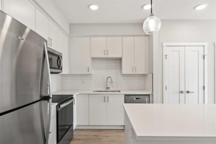 Welcome to your brand-new home in Shawnee Slopes, where modern design meets everyday comfort. This stylish 3-bedroom, 2-bathroom condo in the new Fish Creek Exchange development offers 922 sq. ft. (builder size) of smart, functional living space. Inside, you’ll find high ceilings, luxury vinyl plank flooring, and a beautifully designed kitchen with quartz countertops, full-height cabinetry, and stainless steel appliances — the kind of kitchen that makes cooking feel effortless. The open layout flows seamlessly into the private south east-facing balcony, a perfect spot to unwind with morning coffee, enjoy summer evenings, or take in Calgary’s signature sunsets. Every detail has been considered for convenience and ease, including titled underground parking and a secure storage cage. Located just steps from the Fish Creek–Lacombe LRT Station and minutes from Fish Creek Provincial Park, you’ll enjoy the best of both worlds — city connectivity and nature at your doorstep. Whether you’re a first-time buyer, an investor, or someone looking to simplify without compromise, this home offers a refreshing balance of style, function, and lifestyle in one of Calgary’s most sought-after communities.