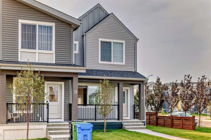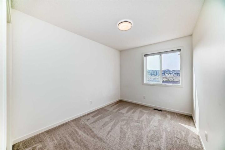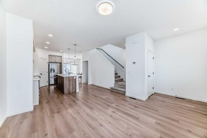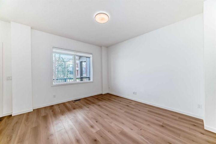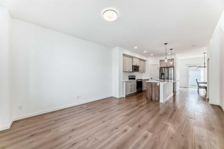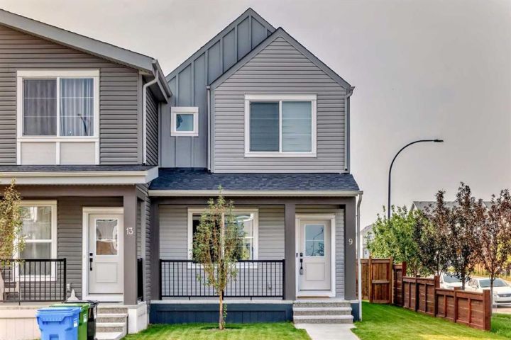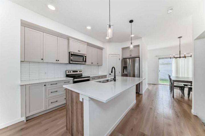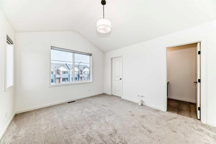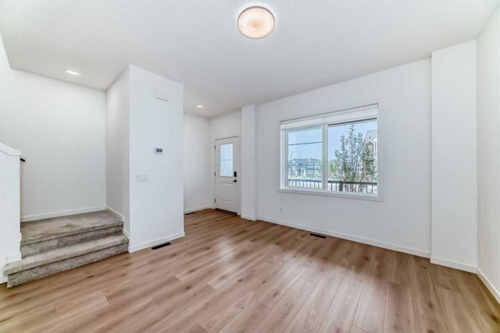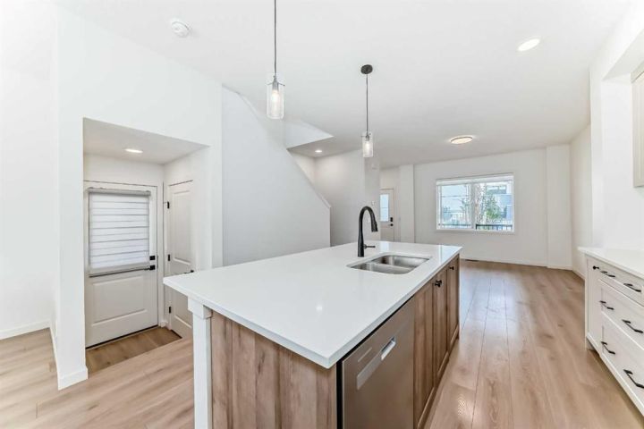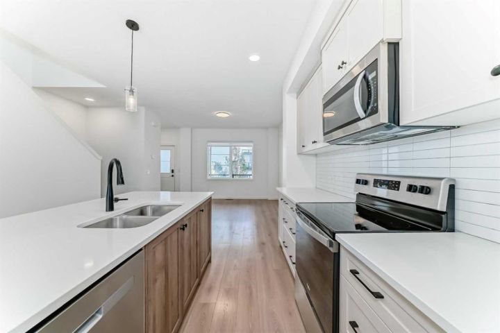 Welcome to this beautifully designed 3-bedroom, 2.5-bath townhome built by Calbridge Homes in 2023! Located right next to the park and playground, this corner unit with NO CONDO FEES offers an extra-large yard and a side entrance to the unfinished basement - potential for legal basement suite (subject to city approval)! Step inside to find a bright and spacious layout, modern finishes, and thoughtful design throughout. The open-concept main floor features a stylish kitchen, dining, and living area ideal for both entertaining and everyday living. Upstairs, the primary suite includes a walk-in closet and private ensuite, complemented by two additional bedrooms and another full bath. Enjoy the convenience of being just steps from a playground and park, with shopping, grocery stores, restaurants, and all amenities nearby at Sage Hill Plaza. With its modern build, prime location, and ample space inside and out, this home offers exceptional value and lifestyle flexibility.