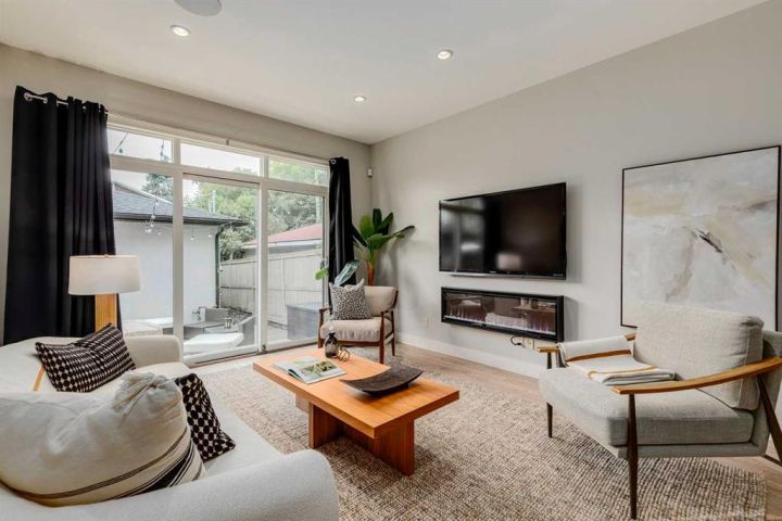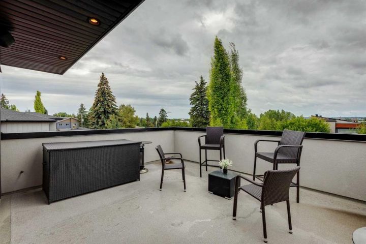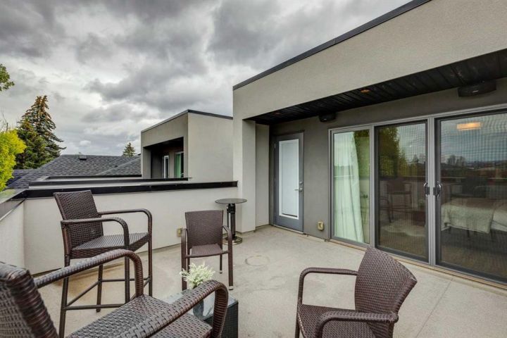 This stunning three-story detached home offers nearly 3,500 sq ft of beautifully finished living space in the heart of Richmond. Every detail reflects thoughtful design, quality craftsmanship + numerous luxury upgrades throughout. Soaring 9-foot ceilings on all levels + large windows fill the home with natural light + hardwood floors throughout. The main floor is ideal for both entertaining + everyday life. The spacious dining room is at the front of the house with lovely street views; Chefs kitchen is efficiently designed, galley style with huge island, upgraded KitchenAid appliances, Caesarstone + quartz counters, walnut cabinetry, under-cabinet lighting, floating shelves, a built-in wine wall + a movable custom island table. Comfy family room with ribbon gas fireplace overlooks backyard. Patio doors lead into the sunny, south-facing backyard—fully finished in maintenance-free concrete with gas hookups for a BBQ + fire table, outdoor speakers + a double detached garage complete with slat wall + ceiling storage. A floating oak staircase leads to the second level, which includes two generous bedrooms, a mezzanine office, a five-piece bathroom with heated floors + a full laundry room. The top-floor primary, is a private retreat, offering a massive walk-in closet with custom shoe racks + storage, a spa-inspired five-piece ensuite with a standalone tub, floor-to-ceiling tiled shower with LED lighting + heated floors. From here, access your large private rooftop patio. The fully finished basement offers a cozy living area with wet bar, an additional bedroom, three-piece bathroom, second laundry set + storage. Additional features include: Smart home system with built-in speakers + full sound/security wiring, four wine coolers, two furnaces, each with humidifiers, dual A/C units for climate control, oversized 80-gallon hot water tank, mudroom with heated floors + custom built-ins, Gemstone exterior lighting + low-maintenance turf front yard. Located on a quiet street just a short walk to Marda Loop, 17th Avenue, Richmond School (K–6) + nearby shops + restaurants.