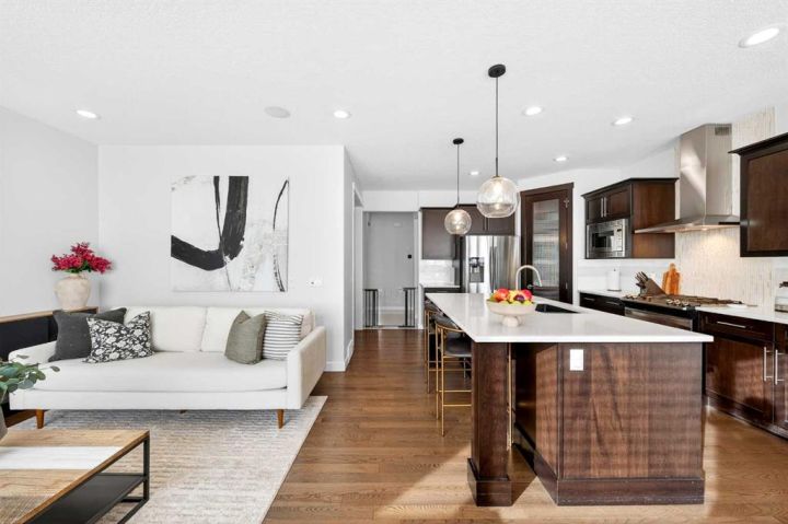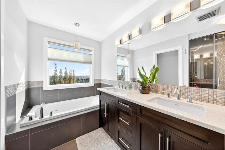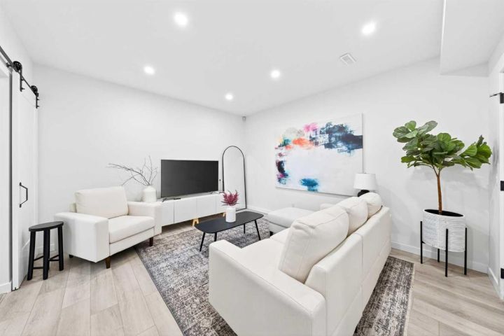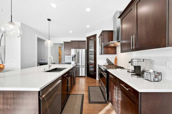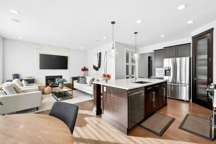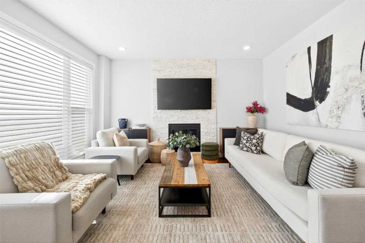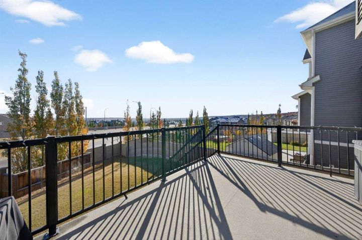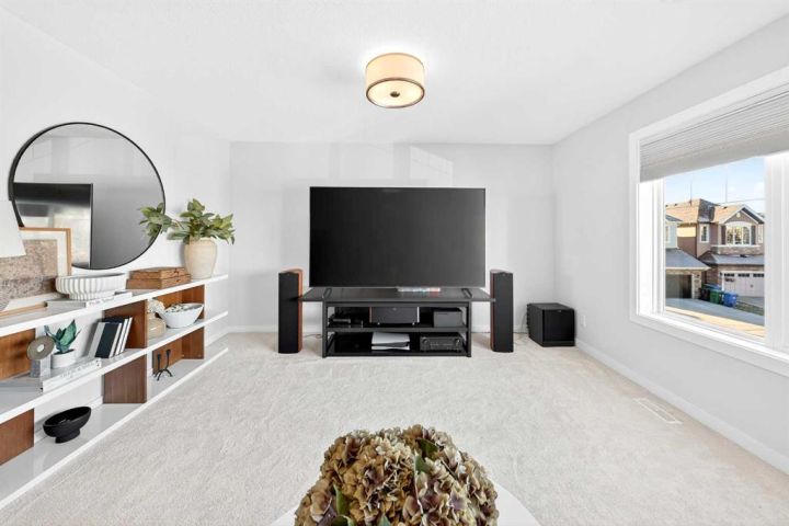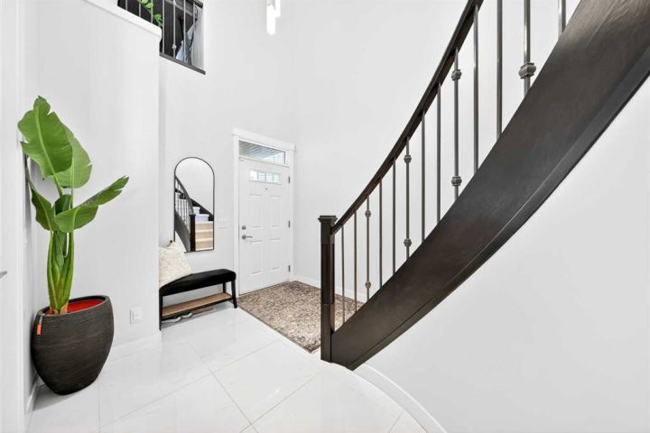 Modern Family Living in a Quiet Cul-de-Sac | Over 2,800 SqFt Developed Space | Located in Sherwood, nestled on a spacious 7,200 sq. ft. pie-shaped lot in a quiet cul-de-sac, this meticulously maintained and Upgraded home shows 10/10 like a showhome and offers 3+1 bedrooms, a bonus room, 3.5 baths, and a fully finished basement — providing over 2,800 sq. ft. of developed living space above grade. Pride of ownership is evident throughout this beautiful modern home. A grand 2-storey foyer with large ceramic tile flooring welcomes you, leading to 9-ft ceilings and rich hardwood flooring throughout the main level. At the heart of the home, the gourmet Kitchen features a central island, quartz countertops, stainless steel appliances including a gas stove and chimney hood fan, and a pantry. The east-facing Living room is bright and inviting, anchored by a gas fireplace with a beautiful stone accent wall, while oversized windows with custom sheer shades fill the space with natural light without compromising privacy. The Dining room opens to a full-width deck with gas hookup, with stairs descending to the expansive East-facing backyard. This level also includes a well-sized Den with French sliding doors, a mudroom with built-in cabinets and bench, and a powder room. 9 foot ceiling and 8 foot doors on the Main floor to give you the open and airy feel. Ascending the curved staircase, you’ll find a bright and spacious Bonus room — perfect for family movie nights, hobbies, or casual gatherings. The East-facing Primary bedroom offers a walk-in closet and a luxurious 5-piece ensuite with double vanity, soaker tub, and tiled standing shower. Two additional well-sized Bedrooms, a full bath, and a convenient upper-level laundry room complete this level. The fully finished basement features a spacious Recreation room, an open Den, and a Bedroom. An office with double barn doors and a window offers potential as a fourth bedroom, and the level also includes a full bath for convenience. Step outside to the fully fenced and landscaped massive East-facing pie-shaped lot, with a staircase leading back up to the deck, perfect for entertaining or relaxing. Located close to schools, shopping including Beacon Hill Shopping Centre with Costco and H-Mart, with easy access to T&T, as well as major roads including Shaganappi Trail and Stoney Trail, this home is also in the highly regarded Sir Winston Churchill High School zone — making it an ideal family choice. With its spacious above-grade living, versatile bonus room, fully finished basement, and expansive pie-shaped lot, this home offers the perfect balance of elegance, comfort, and functional space for family life, entertaining, and creating lasting memories.