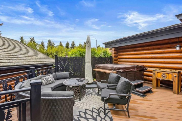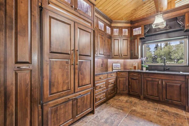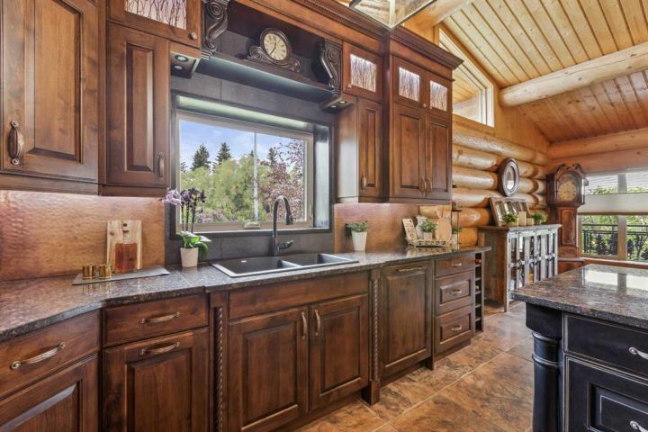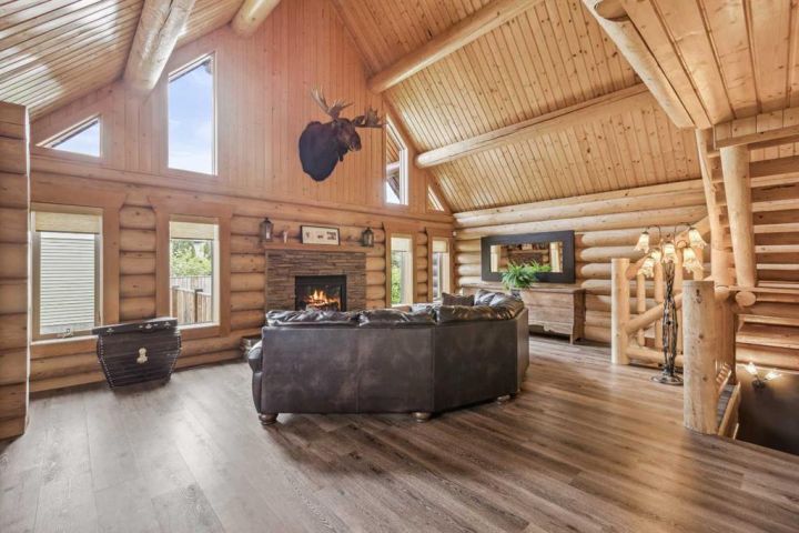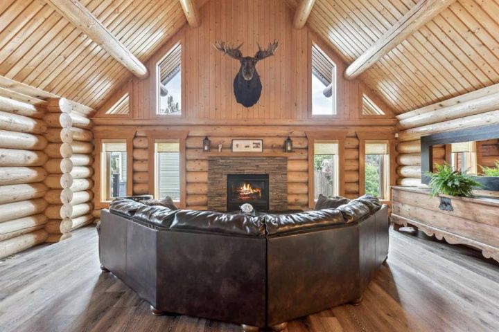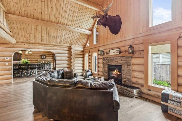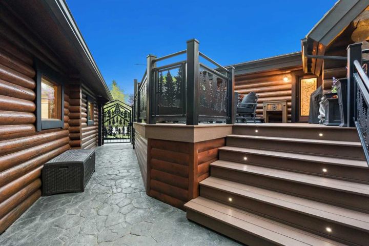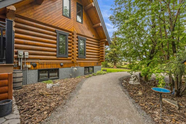 Discover luxury living in this custom immaculate home, nestled on just over 1/3 acre in a private cul-de-sac location and backs onto a 4 acre dry pond. This stunning pristine property offers over 3,400 square feet of developed space, thoughtfully designed to cater to the desires of discerning buyers who appreciate the charm of log homes and the privacy of a secluded location. Constructed with precision and artistry, this log home showcases the beauty of natural wood in every corner. The grand entrance leads you into a space where exposed log beams and walls exude rustic elegance, blending seamlessly with modern amenities. With 5 bedrooms and 3 full bathrooms, this home provides ample space for family and guests. The loft-style primary bedroom with skylights is a true retreat, featuring a luxurious copper soaker tub and seated vanity in the ensuite bathroom. The heart of the home boasts a custom kitchen equipped with high-end appliances and cabinets. The island seats 7 with river rock brazilian granite. Perfect for culinary enthusiasts and entertaining guests. Enjoy cozy evenings by the fireplace, take in the soaring ceilings and experience the comfort of in-floor heating throughout the home on every level. Two main floor bedrooms, a full bathroom, Main floor laundry, spacious mud room and a plethora of storage options add to the convenience and functionality of this home. The fully developed basement includes a spacious family room with a wet bar, built in's, an exercise space, 2 bedrooms, and a full bathroom with a hydrotherapy tub. The yard is a masterpiece of landscaping, featuring mature trees and shrubs, nighttime lighting, and a custom firepit area with backlit steel engraved panels and built-in benches. Enjoy outdoor gatherings in the custom firepit area or relax on the spacious deck soaking in the hot tub or lounging in the sun. There's also RV parking and two large storage sheds. Perfect for car enthusiasts, the tandem triple oversized garage provides ample space for vehicles and storage. Strathmore offers a full range of amenities, including excellent schools, sports facilities, parks, and pathways. This property combines the tranquility of a private retreat with the convenience of nearby urban amenities. This exceptional log home is a rare find, offering the perfect blend of rustic charm and modern luxury. Whether you are looking for a peaceful retreat or a place to entertain family and friends, this property has it all. Schedule your private viewing today and step into a world of unparalleled beauty and comfort. Don’t miss the opportunity to make this home your reality.