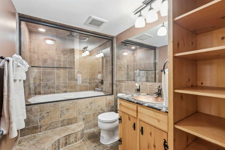- Beamed Ceilings, Breakfast Bar, Ceiling Fan(s), Closet Organizers, Granite Counters, High Ceilings, Jetted Tub, Kitchen Island, Natural Woodwork, No Animal Home, No Smoking Home, Skylight(s), Soaking Tub, Storage, Vaulted Ceiling(s), Vinyl Windows, Wet Bar