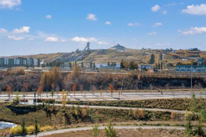Welcome to The Apollo at Greenwich — this exceptional 2-bedroom, 2-bathroom condo offers TWO titled underground parking stalls (not tandem but two individual spaces) and TWO assigned storage cages — one conveniently located on the same floor as the unit and another on the parkade level. Enjoy an unobstructed view of the ski hill at Canada Olympic Park from your private balcony, adding to the appeal of this bright and modern unit!