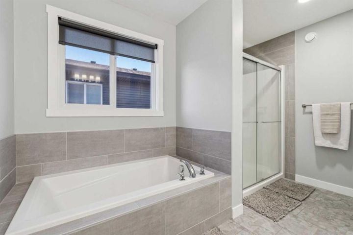 The primary bedroom is a serene retreat with a 5-piece ENSUITE featuring DOUBLE SINKS, a SOAKING TUB and a STAND ALONE SHOWER. The WALK-IN CLOSET that offers TWO-TIERED SHELVING and a WINDOW for natural light—a rare and thoughtful upgrade.