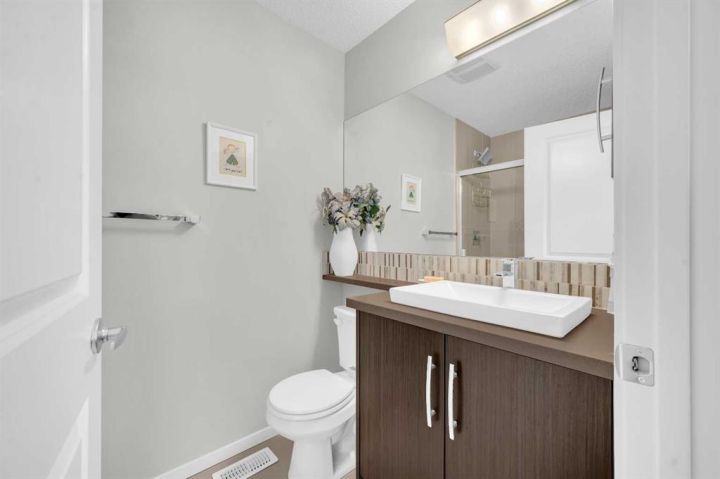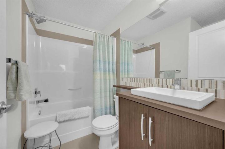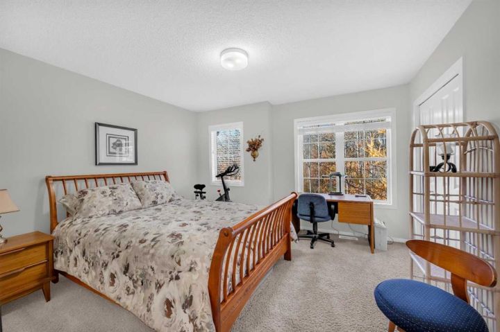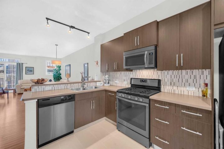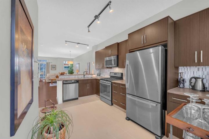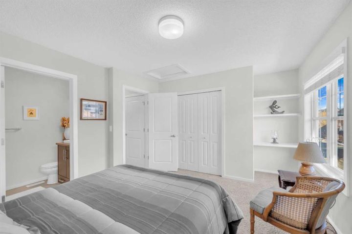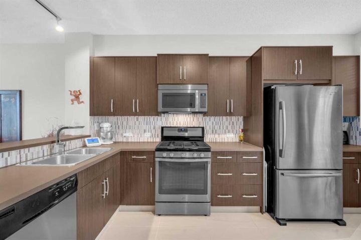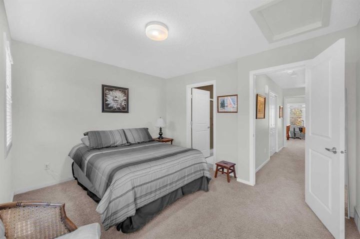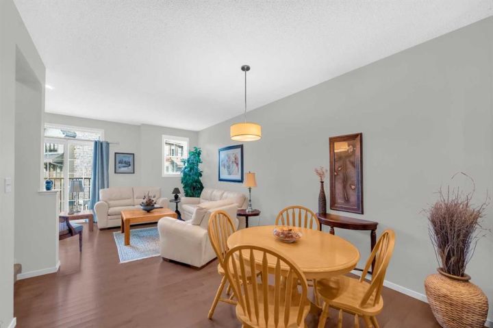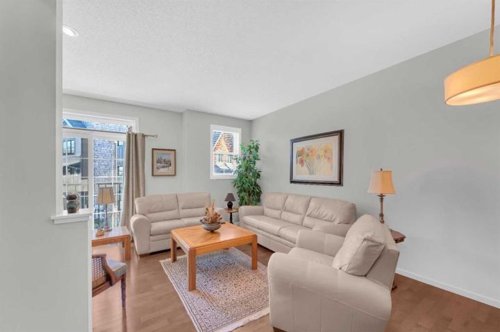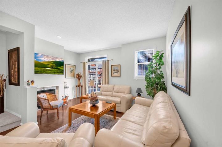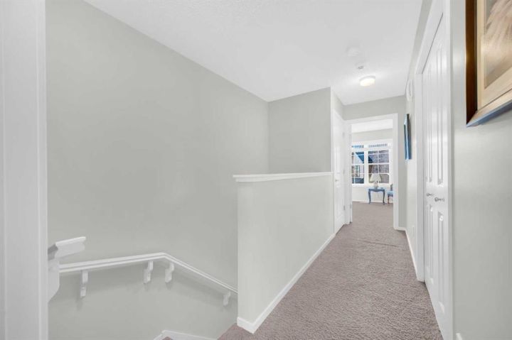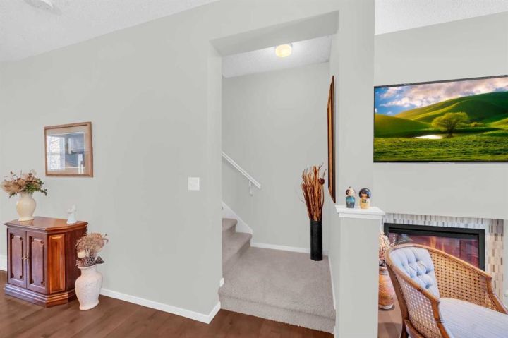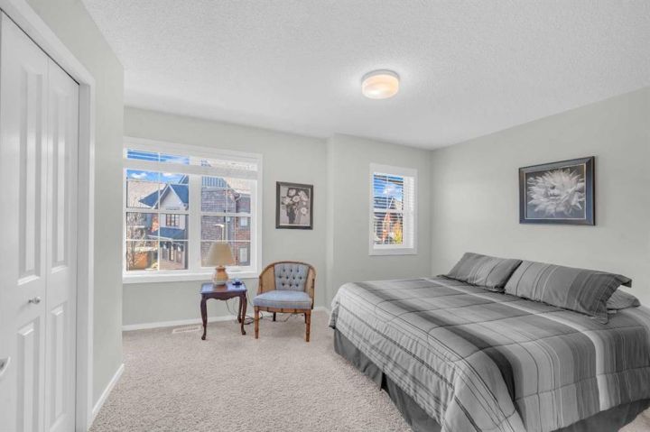 Welcome to this exquisite east-facing townhouse in Aspen Woods, one of the most desirable communities in Calgary. This property boasts extensive upgrades and one of the best features includes a Tandem double attached car garage, perfect for Alberta's cold, snowy winters, it will keep your car nice and warm. Its charming curb appeal is sure to captivate at first glance. Upon entering, you will be greeted by a bright, high ceilings and open layout concept. The well-designed living room seamlessly connects to the dining area and a stunning kitchen, which is equipped with high-end stainless steel appliances and laminated countertops. The second floor also includes a fire-place in the living room, convenient 2-piece bathroom, a decent-sized deck/balcony that faces the west, ensuring ample sunlight throughout the day and providing an ideal setting for evening BBQ gatherings with friends and family. The third floor comprises of TWO PRIMARY bedrooms with walk-in closets and ensuite 4-piece bathroom and an ensuite 3-piece bathroom. One of the most convenient features of the third floor is the laundry area, complete with a washer and dryer, eliminating the need to run up and down the stairs for laundry tasks. Notable upgrades include 9ft ceilings, hardwood flooring, tiles, stainless steel appliances, high-quality carpets, and an upgraded washer and dryer. The location of this townhouse is truly exceptional, being in close proximity to the mountains, a major highway Stoney Trail. It is also conveniently near a pond, children's parks, schools, bus stops, shopping complex, and various restaurants, all just a few minutes away. Do not hesitate; this townhouse is ready for you to move in.