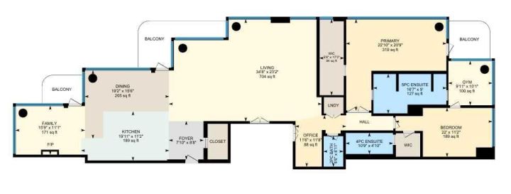 Experience luxury living in this MASSIVE residence in the highly sought after Arriva building. Enjoy complete exclusivity with your own private high-speed elevator. Floor-to-ceiling windows draw in natural light and provide panoramic views of the city and Bow river. This executive home with a sprawling floor plan makes it ideal for entertaining and hosting gatherings. The state-of-the- art kitchen features a full Miele luxury appliance package, and an expansive island that seamlessly opens to the dining room with direct access to one of three balconies where you can take in the iconic views of downtown. Adjacent to the kitchen is an intimate family room with built in cabinetry a warm fireplace and another private balcony. On the opposite side of the kitchen and dining is generous living room providing ample space for gathering and more spectacular views! A private office with built in storage and a powder room are tucked in and away. The primary is a true sanctuary with unmatched views, a balcony overlooking the serene river, an expansive walk-in closet with built ins. This is complete with a spa inspired 5PC ensuite and access to your own home gym, or space for a private dressing room or yoga space. The secondary bedroom has a custom murphy bed, walk in closet, and its own 4PC ensuite providing a private retreat for family or guests. Experience this perfect blend of luxury and privacy. The Arriva building offers 24-hour security and concierge services, two guest suites, a rooftop garden, an owner’s lounge, central A/C, and secure access. Exceptional executive living located in the vibrant Beltline area, steps from Stampede grounds, the new rink, river pathways, restaurants, cafés, central library and LRT access. View the virtual tour or schedule your private showing today!