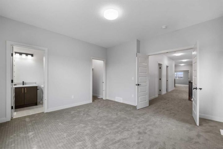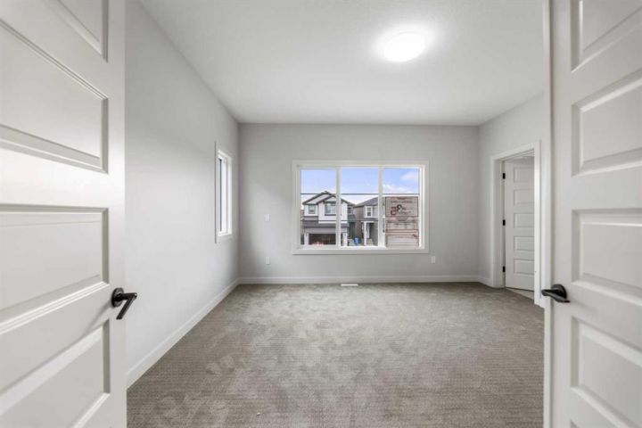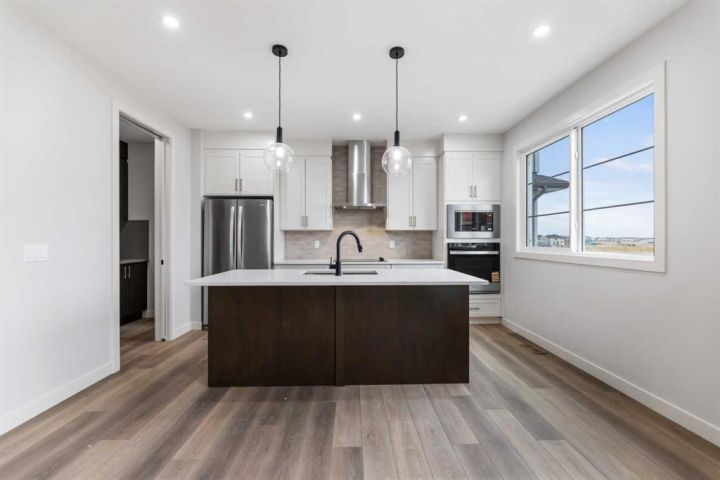 Welcome to Savanna and this beautiful home build by the award winning Prominent Homes Backing on to the Pond with a Walk-out Basement! This executive style home features 5 Bedrooms including 2 Master Bedrooms, Bedroom on Main Floor with Full Bathroom 4 Bedrooms Upstairs! This Open concept home offers plenty of natural light throughout the home. The main floor features 9 feet high ceilings, Open to Above entry, Chic kitchen including Built-in Oven and microwave, nice size Living and Formal Dining room as well a large Family room. This home features a Spice Kitchen as well as there is a Main Floor Bedroom and a Full Bathroom on the Main Floor. The Upper Level a Beautiful large Primary Bedroom with fantastic 5-piece Ensuite plus 3 other bedrooms upstairs including two Primary bedrooms, a Huge Bonus Room and Laundry Room. This home will be ready in November 2025 for possession! Call to book your private showing today!