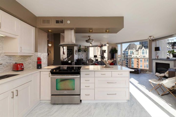 Welcome to an unparalleled urban lifestyle in the heart of the dynamic riverfront community of Eau Claire. Living here means being steps away from Prince’s Island Park, the Bow River Pathway system, trendy cafés and restaurants, all just a short walk to the business district. Situated in the Liberte building, this sophisticated, beautifully appointed 2 bedroom, 2 bathroom suite has incredible natural light from expansive, floor-to-ceiling windows, and offers captivating cityscape views. The open concept living space has a modern, bright aesthetic and was designed for comfort and effortless entertaining. The spacious living room features a corner gas fireplace and ample room for the most generous seating arrangements. The gourmet kitchen boasts pristine white cabinetry, stainless steel appliances, and a large central island that anchors the room and provides the perfect spot for casual dining and conversations. The adjacent den allows for a great home office space, or alternatively, an additional dining area. The living area is extended by two large balconies, where one can enjoy their morning coffee or evening cocktails while taking in the panoramic views of the downtown skyline. The layout of the home provides separation and privacy between the living areas and the two bedrooms, each designed as a comfortable retreat. The spacious primary suite easily holds a king bed and additional furniture pieces, and has double closets lining the hall to the ensuite bathroom. The second bedroom is equally well sized, and has a second full bathroom (including laundry closet) located just outside the door. The building offers extensive amenities, including a fitness centre, tennis court, party room, and heated underground parking. This turn key residence is more than just a home, it’s an opportunity for amenity and activity rich living. Walk out your door to the Bow River Pathway for a run or bike ride, stroll across to Prince's Island Park for a festival, or walk just minutes to the fantastic restaurants and shops, and for professionals working downtown, the commute can’t be beat! Book your private showing today.
