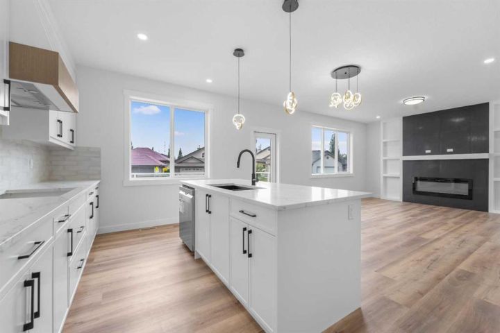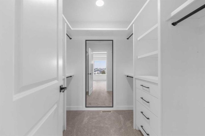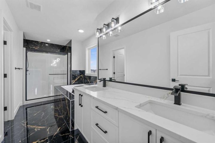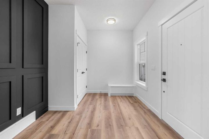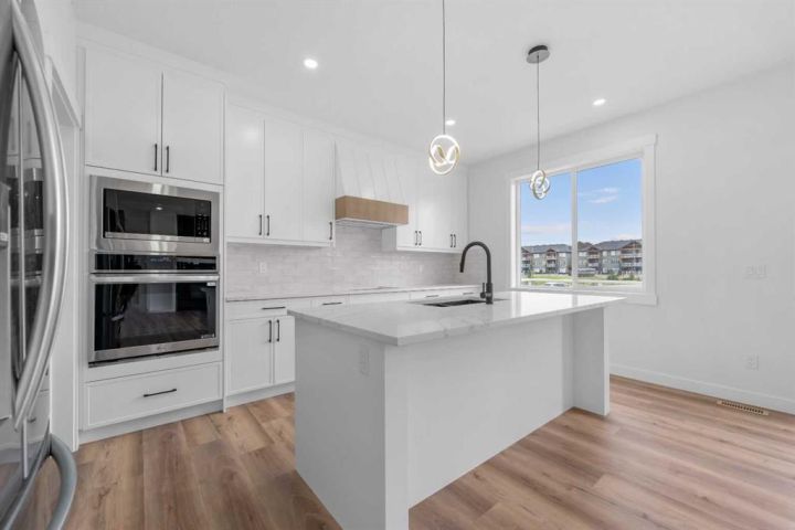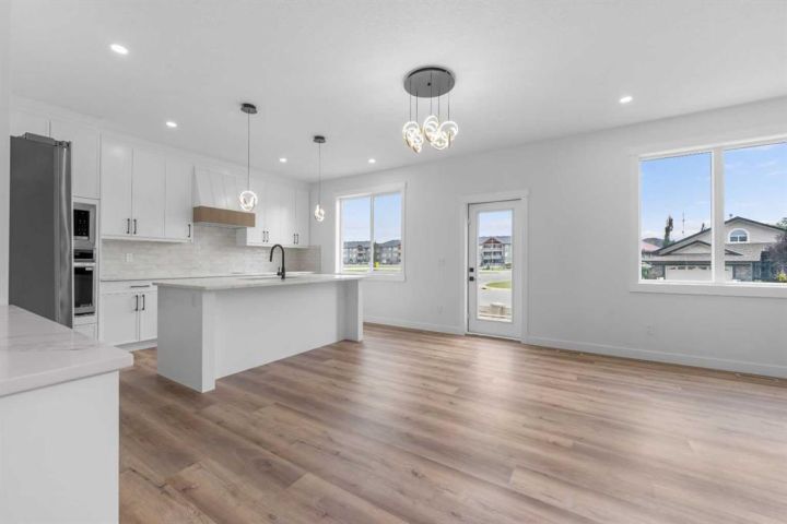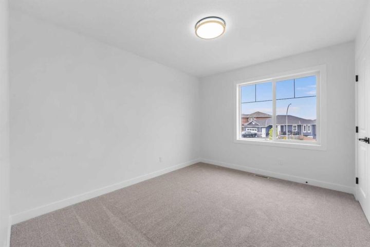 * Brand New 2,559SqFt Family Home * 2,559 SqFt | Chef's Kitchen | Spice Kitchen | Stainless Steel Appliances | Insert Range Hood | Full Height Cabinets | Quartz Countertops | Kitchen Island with Barstool Seating | Pantry | Modern LED Pendant Lighting | Electric Fireplace | Accent Wall | Built-in Shelving | Main Level Office | Main Level 3pc Bath | Mud Room | Upper Level Family Room | 4 Bedrooms & 2 Bathrooms Upstairs | Primary Bedroom Tray Ceilings | Spa Like Primary Ensuite Bath | Custom Closet | Walk-in Laundry Room with Sink & Cabinet Storage | Side Entry to Basement | Deck | BBQ Gas Line | Massive Yard | RV Parking | Triple Attached Garage | Additional Door From Garage to Backyard. Welcome to your BRAND NEW HOME! Be the first to unpack your bags in this gorgeous 2-storey family home boasting 2,559 SqFt throughout the main and upper levels with an additional 988 SqFt in the unfinished basement. The front door opens to a spacious foyer with a hall closet for a tidy space & black wall panels adding depth & style. The main level office is a bonus for anyone with a work from home lifestyle or could easily be used as a bedroom as across the hall is a 3pc bath. The open heart of this home is the open plan kitchen, dining & living rooms all full of natural light. The chef's kitchen is upgraded to the max- built-in stainless steel appliances, a hidden insert range hood, quartz countertops, full height upper cabinets & a centre island with barstool seating! Keep this kitchen spotless & use the spice kitchen outfitted with a gas stove, range hood, single basin sink & open pantry shelving. The dining area is paired with a door to the deck making indoor/outdoor dining easy! The deck has a BBQ Gas line for those grill masters! The living room is centred with an electric fireplace with a black floor to ceiling accent wall & is framed with built-in open shelving. The main level is complete with a mud room that connects to triple attached garage! Upstairs is finished with plush carpet flooring throughout the family room & all 4 bedrooms. The primary bedroom is a masterpiece with tray ceilings, large windows & recessed lighting. The primary has a walk-in closet with custom built-ins & a private 5pc ensuite bath. The ensuite is breathtaking with a marbled black tile flooring, deep soaking tub, walk-in shower, private washing closet an& d double vanity sinks. Bedrooms 2, 3 & 4 are all a great size & share the main 5pc bath with it's own double vanity & a deep tub/shower combo. The upper level family room is the perfect space to unwind in the evenings with your family. Finishing off the upper level is the full walk-in laundry room with a sink & cupboard storage for linen. Downstairs, the basement has a separate entry & rough-in plumbing. The blank canvas makes this a space to customize for whatever your family needs. The front attached triple car garage & matching triple car driveway provides space for 6 vehicles to be parked at any time! Hurry and book your showing today!