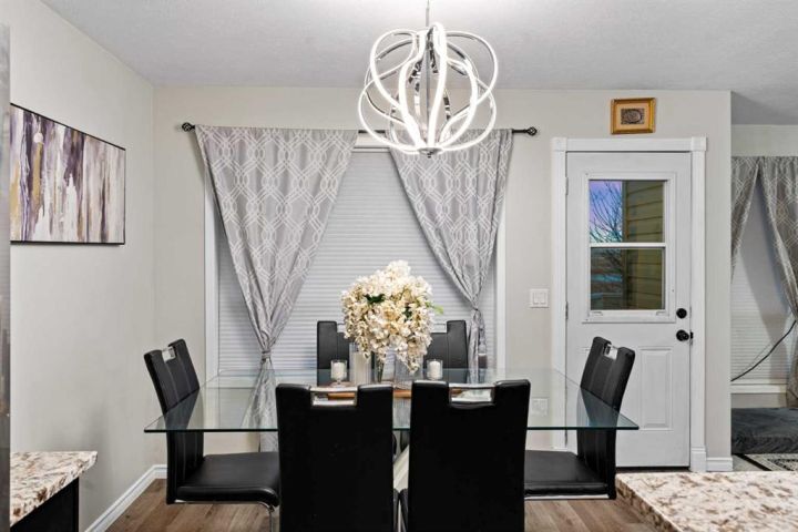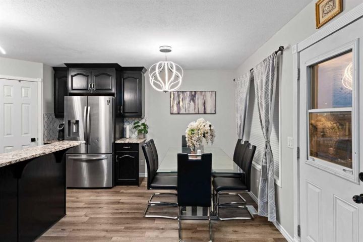 BEAUTIFULLY MAINTAINED two-storey home with a WALK-OUT BASEMENT located in the desirable community of Monterey Park. The main floor features an open layout with high ceilings, large windows, and modern finishes that fill the home with natural light. The bright living room with a fireplace connects seamlessly to the dining area and a stylish kitchen with dark cabinetry, stainless-steel appliances, and granite countertops. A convenient laundry area is located on the main floor. Upstairs offers three comfortable bedrooms, and primary bedroom with a walk-in closet and private ensuite The fully finished walk-out basement provides a warm and functional space with a large recreation area, a custom bar that can be converted into a kitchen, one bedroom, and a full bathroom. Additional highlights include a double attached garage, a fenced backyard with a covered patio, and close proximity to parks, schools, shopping, and major roadways.