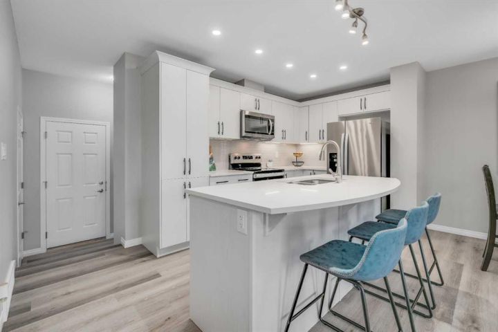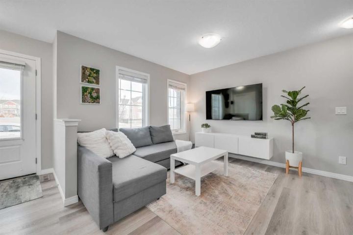 Welcome to 109 Yorkville Blvd SW — a bright, modern, and well-maintained 3-bedroom, 2.5-bathroom NO-CONDO-FEE townhouse perfectly positioned directly across from Yorkville Park. Enjoy an unobstructed west-facing view with no neighbours in front, filling the home with natural light. The open main floor features a kitchen with white quartz countertops, a spacious island, stainless steel appliances, and a new faucet. The dining area fits a full-sized table, and the living room is enhanced by large west-facing windows. A mudroom, half bath, and double attached garage complete this level. AIR CONDITIONING added in 2025. Upstairs, the primary bedroom includes a walk-in closet, private balcony, and a beautifully upgraded 5-piece ensuite with double sinks, a 10mm glass shower, soaker tub, and water closet. Two additional generous bedrooms, a full bathroom, and upper laundry provide excellent functionality. The unfinished basement is ready for future development. Located in a fully developed, highly convenient pocket of Yorkville, this home offers quick access in and out of the community and is steps from Sobeys, the Silverado Shopping Centre, parks, playgrounds, and walking paths. Bright, clean, and move-in ready. Book your showing today!